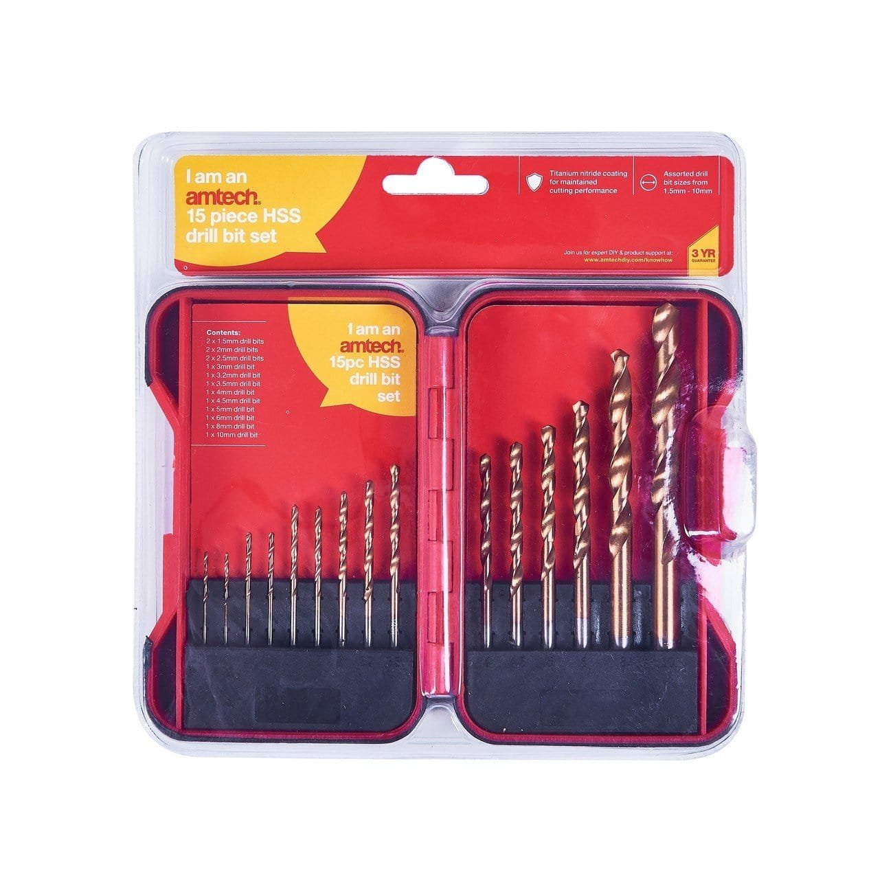 15Pc Hss Drill Bit Set Titanium Nitride Coated