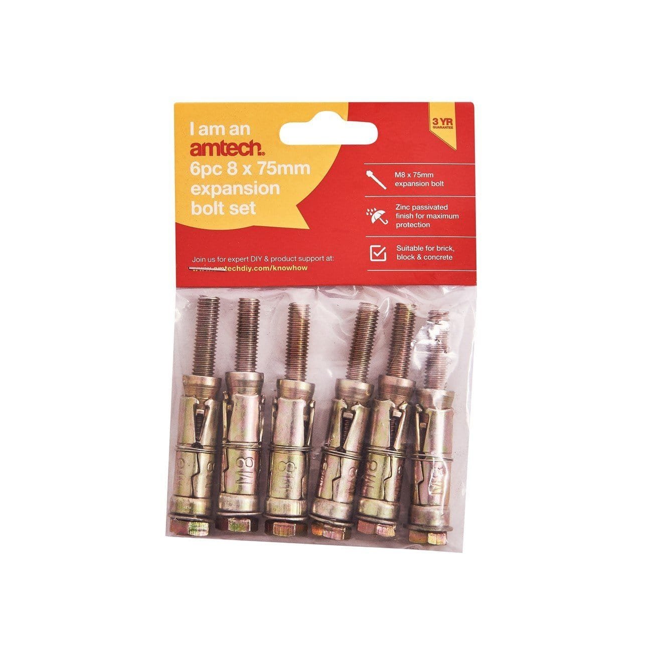 6Pc 8 X 75Mm Expansion Bolts