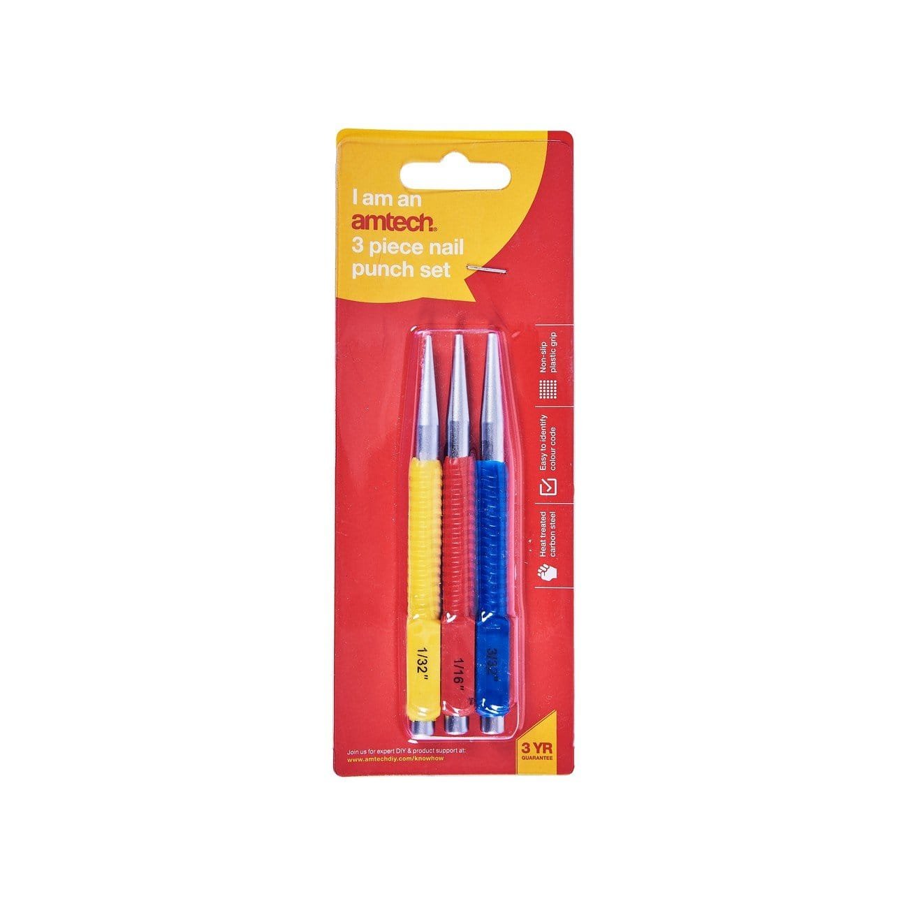 3Pc Colour Coded Nail Punch Set