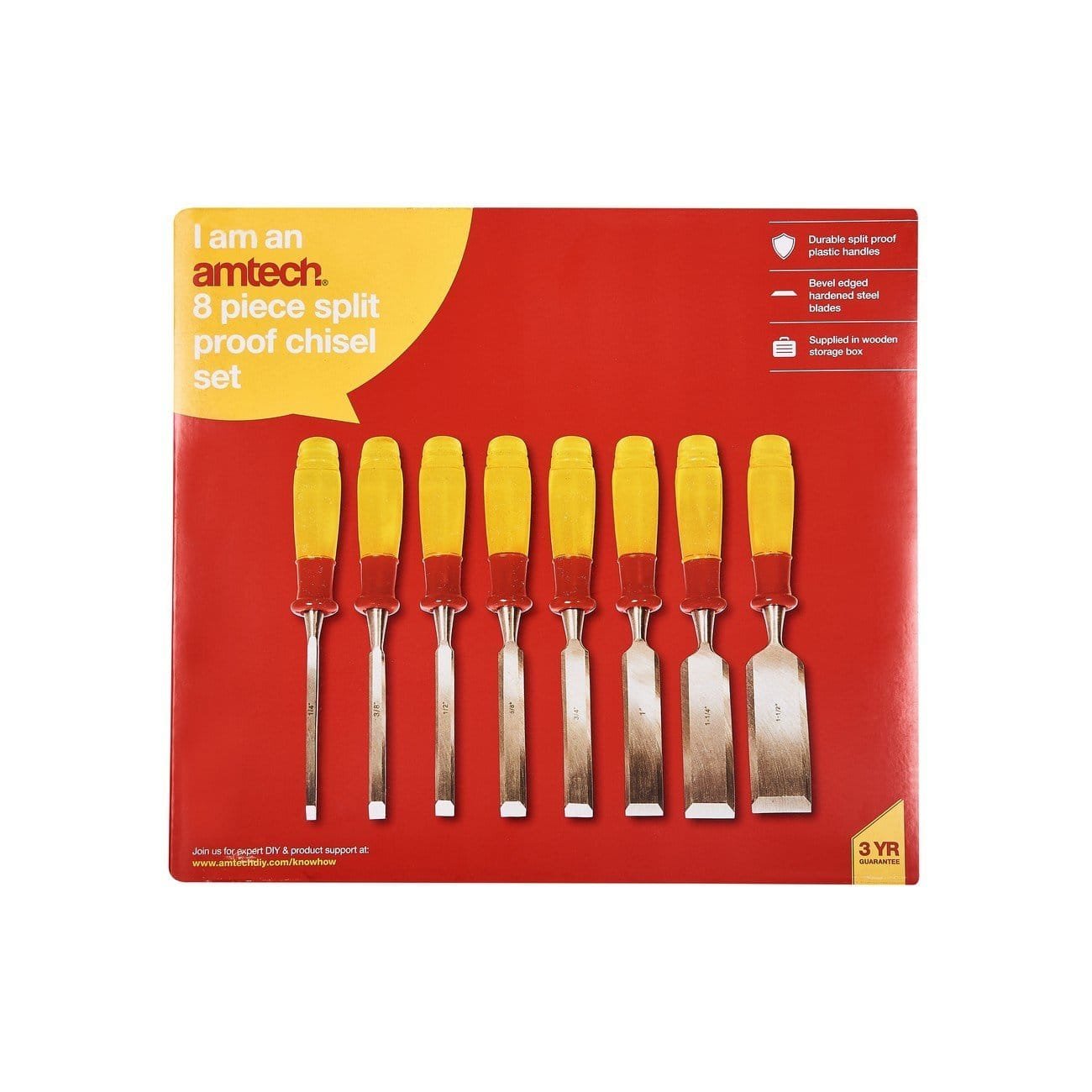 8Pc Split Proof Chisel Set In Wooden Box