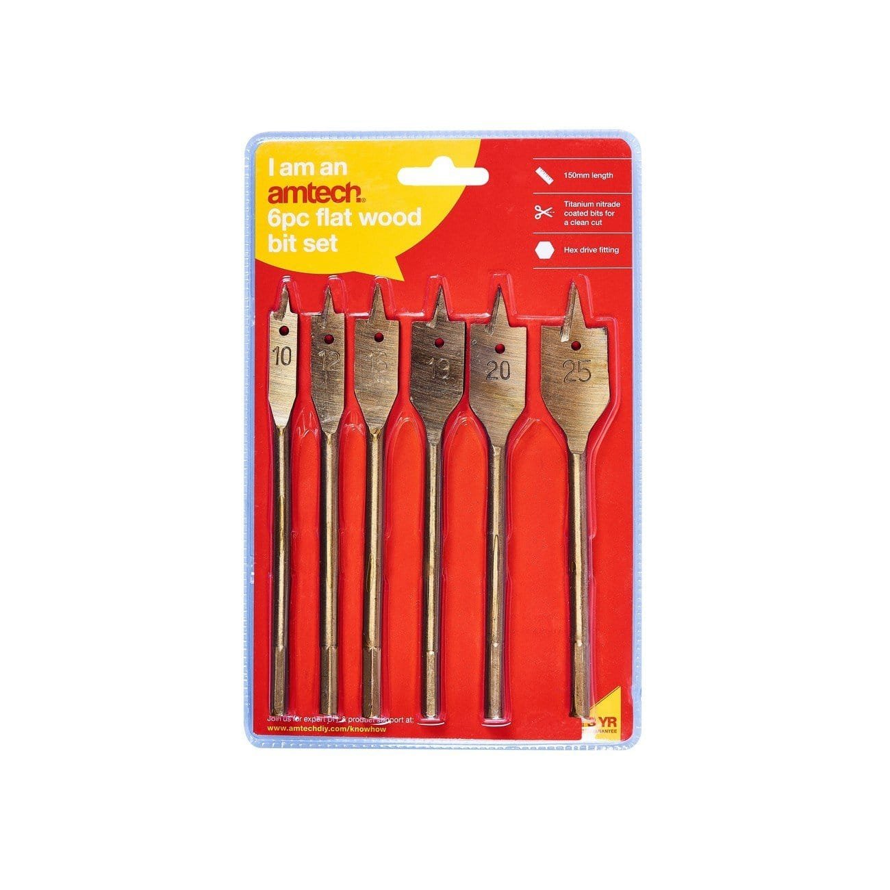 6Pc Flat Wood Bit Set ?Titanium